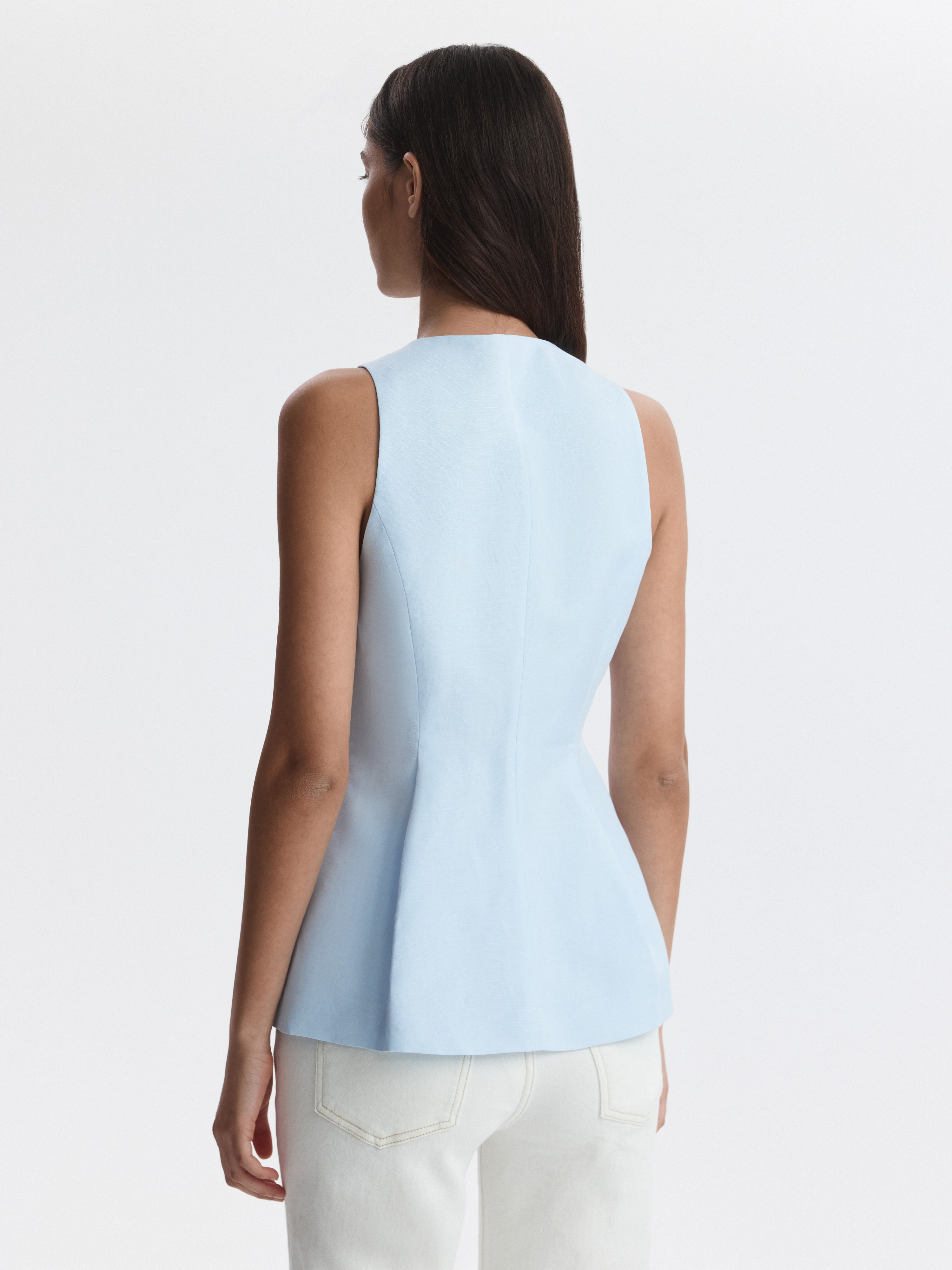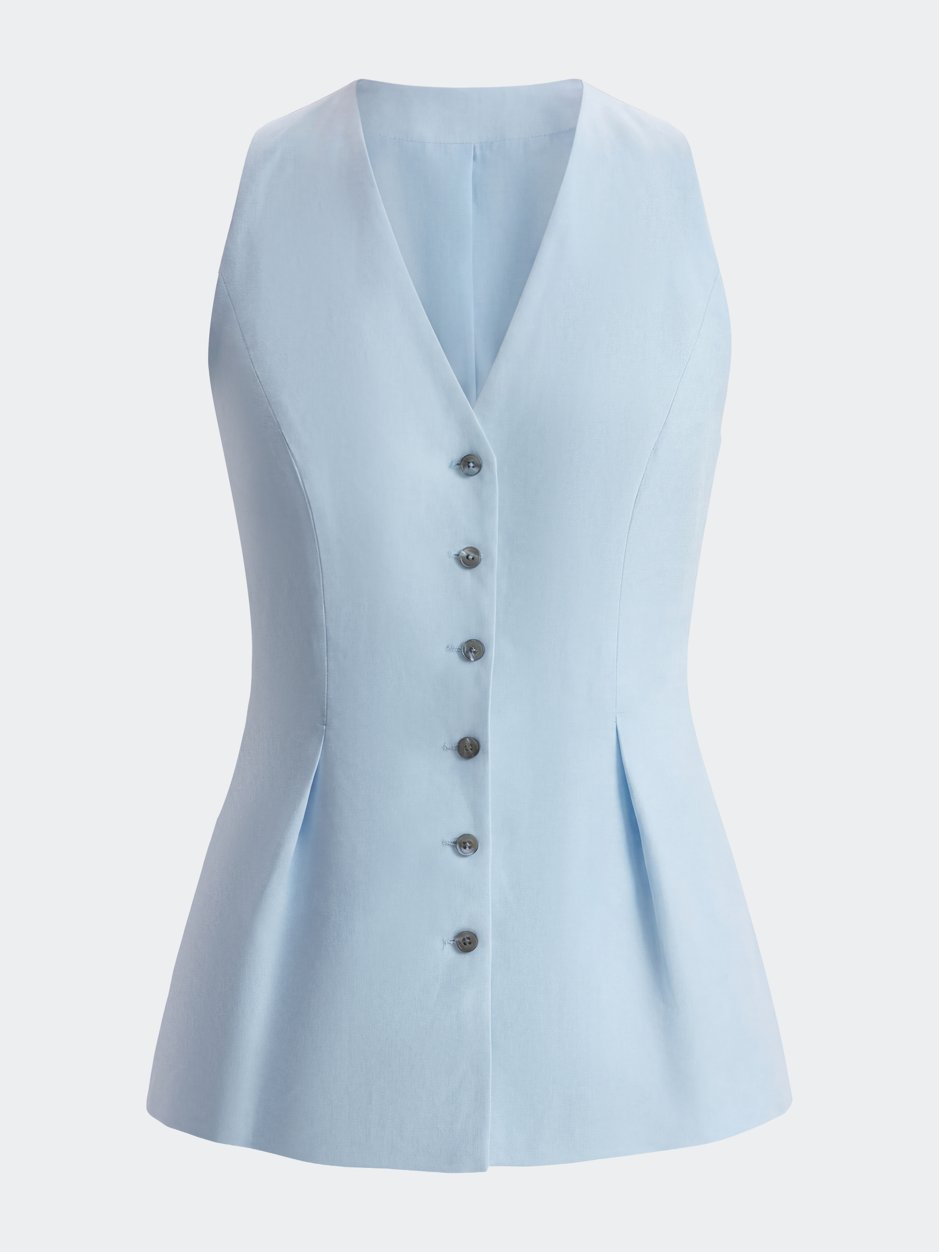 Приталенный жилет с защипами будет стильно смотреться в многослойных образах, а в теплый сезон носите его как топ. В меру плотный текстиль на основе льна хорошо пропускает воздух и сохраняет комфорт, а хлопковая подкладка дарит мягкое прилегание. Сочетайте изделие с парной юбкой или с денимом.