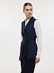Удлиненный классический жилет обретает баланс строгости и женственности: за первое отвечает плотный костюмный текстиль и двубортный крой, а за второе – мягкий шалевый воротник и пояс на талии. Сочетайте изделие с брюками из такой же ткани или стилизуйте с денимом.
