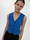 Укороченный жилет приталенного кроя выполнили из плотного костюмного текстиля, который не тянется и сидит по фигуре. Такой акцентный жилет прекрасно дополнит повседневные образы, освежая их: в классическом варианте надевается под пиджак, или носите его поверх рубашки.